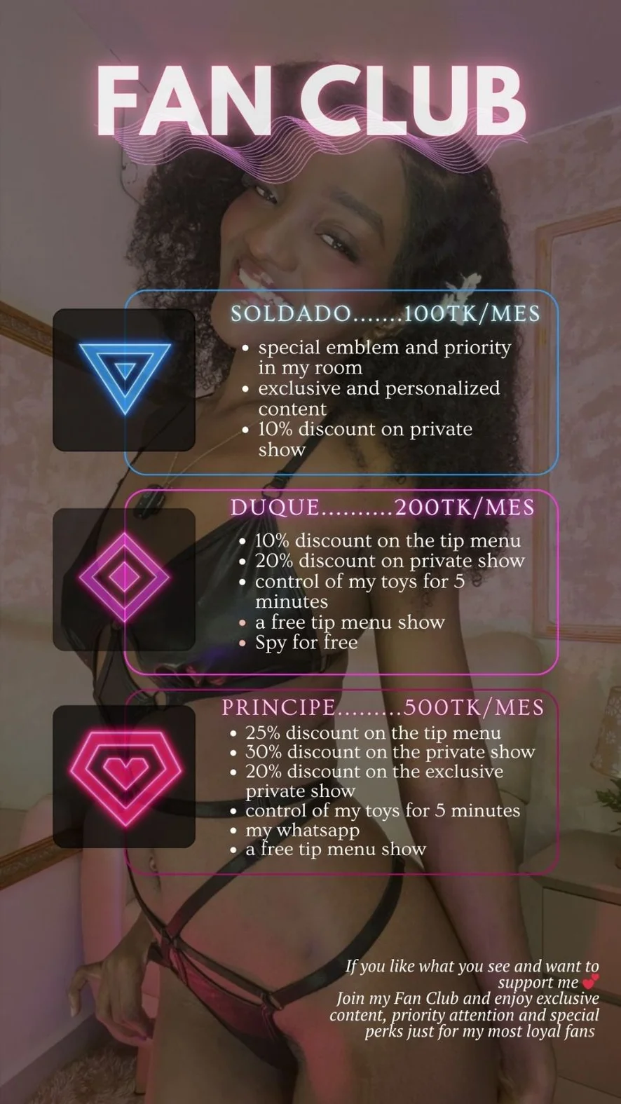 رقص مثير, خف الجمل, قذف على الوجه, عرض زيت, صدر عارٍ, كعوب عالية, نايلون, وضعية الكلب, صفع, فتيشية القدم, Squirt extra 200 tkns, Control machine 300tkn, Anal 450 tkns, فطيرة الكريم, تصبيع, رقص التعري, تعري, ألعاب جنسية, ألعاب حلمة الصدر, مص, العادة السرية, بلع حتى الرغبة في القيء, نشوة, راعية بقر, doble pentracion extra 999, Anal 380tkn, Ride torso, control machine x 5 min 250, قضيب صناعي أو هزاز, دش, حلق عميق, لعب الأدوار, ألعاب شرجية, نطر كساس, فاضح جدًا