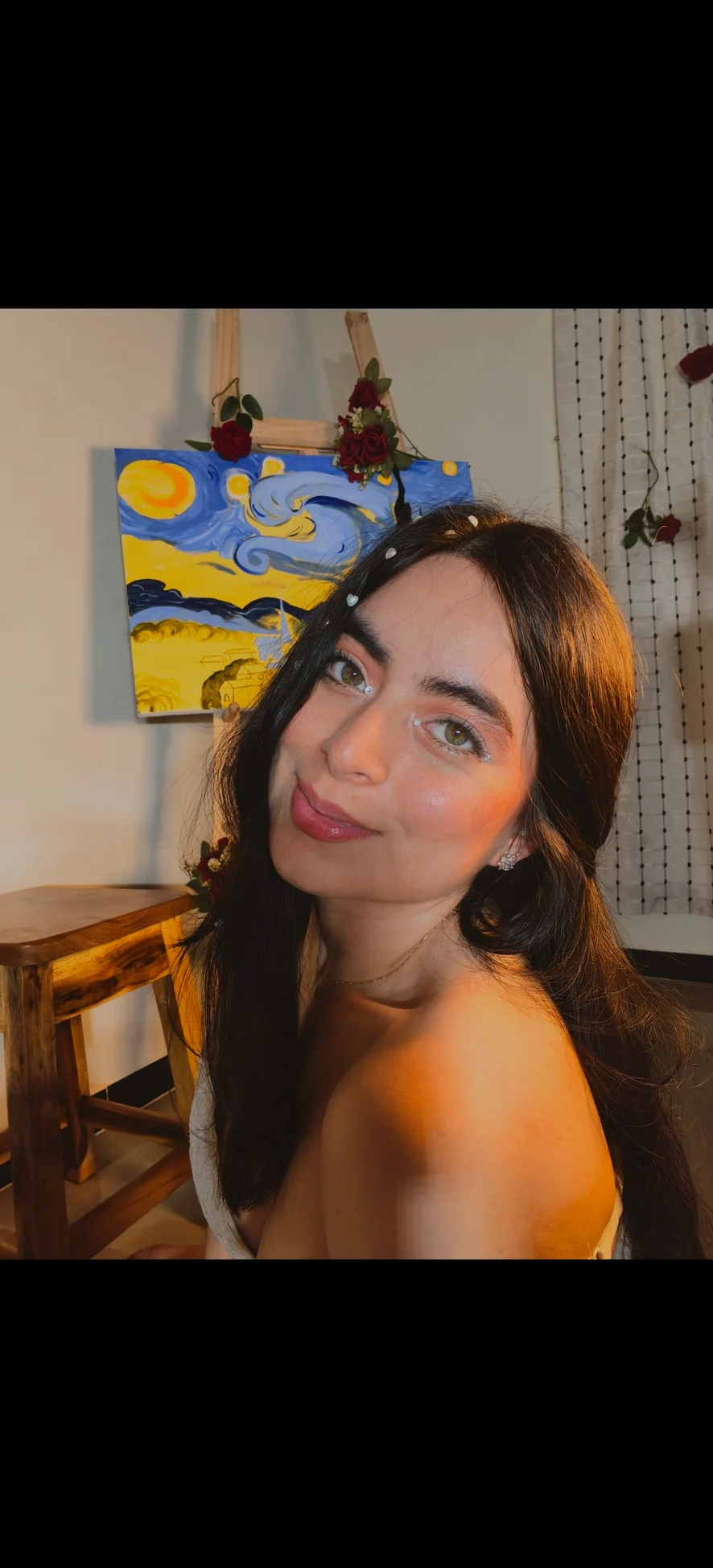 A veces, el lienzo se cansa de esperar... y yo me vuelvo la obra. 🎨 ¿Ves la inspiración en mis ojos o en mi piel? ✨"